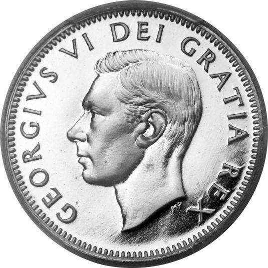 After the death of George VI in February 1952, a new obverse was designed by Mary Gillick and Thomas Shingles with the likeness of Queen Elizabeth II when she was 27 years old, surrounded with the inscription "ELIZABETH II DEI GRATIA REGINA" (Elizabeth II, by the grace of God, Queen) uncrowned but wearing a laurel wreath. Lettering: ELIZABETH II DEI GRATIA REGINA Engraver: Mary Gillick |