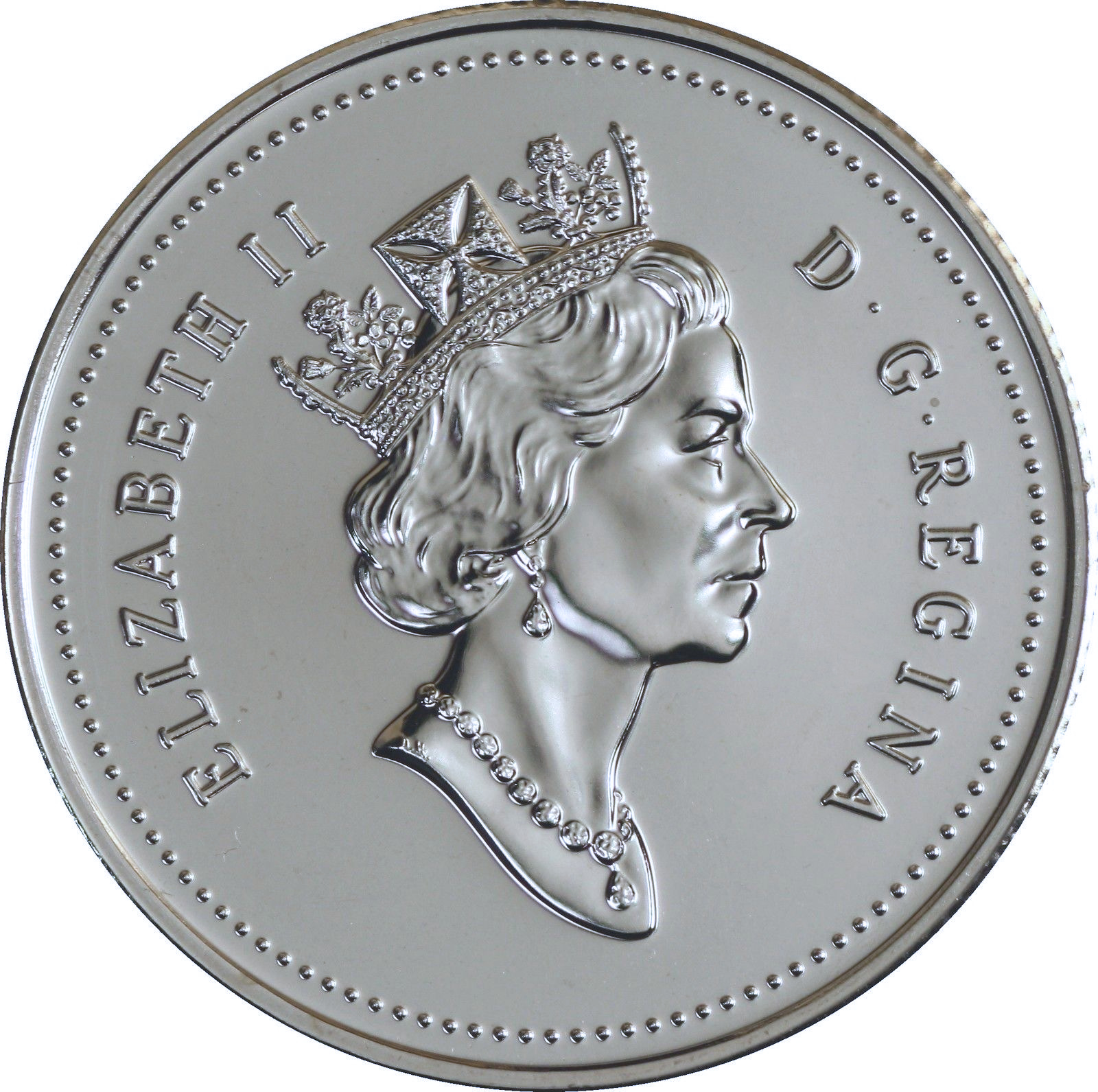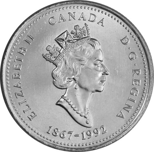 For the 125th anniversary of Confederation, twelve new obverses were designed (one released each month) honouring the ten provinces and two terroitories. All twelve reverse coin designs shared the same obverse. |