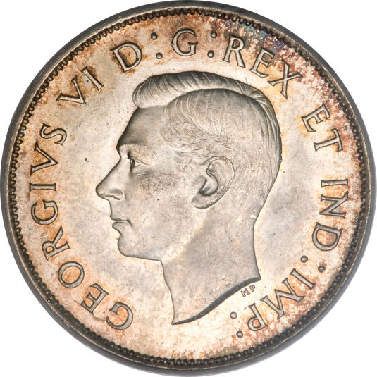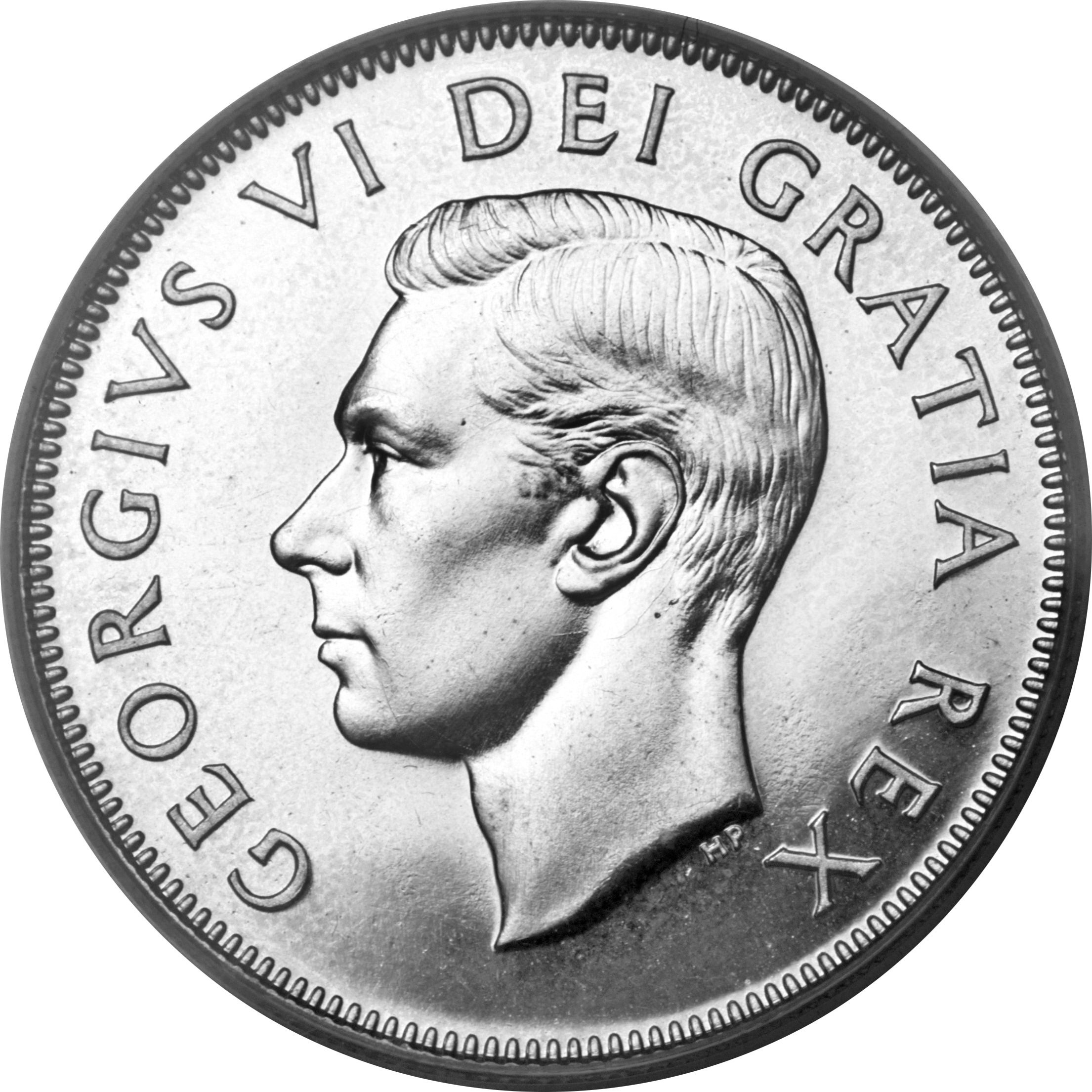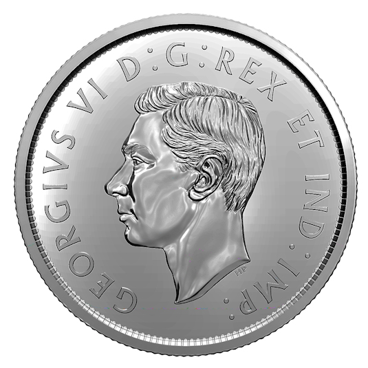 100th Anniversary of Canada's Coat of Arms This is a modern reproduction of the 50-cent coin issued in 1937. It was the first coin to feature Canada's Coat of Arms, which was originally adopted 100 years ago (1921) by proclamation of King George V. The obverse features the historic effigy of King George VI by T. H. Paget and the inscription "GEORGIVS VI:G:REX ET IND:IMP" (George VI, by the grace of God, King and Emperor of India), as seen on all Canadian coins issued that year. |