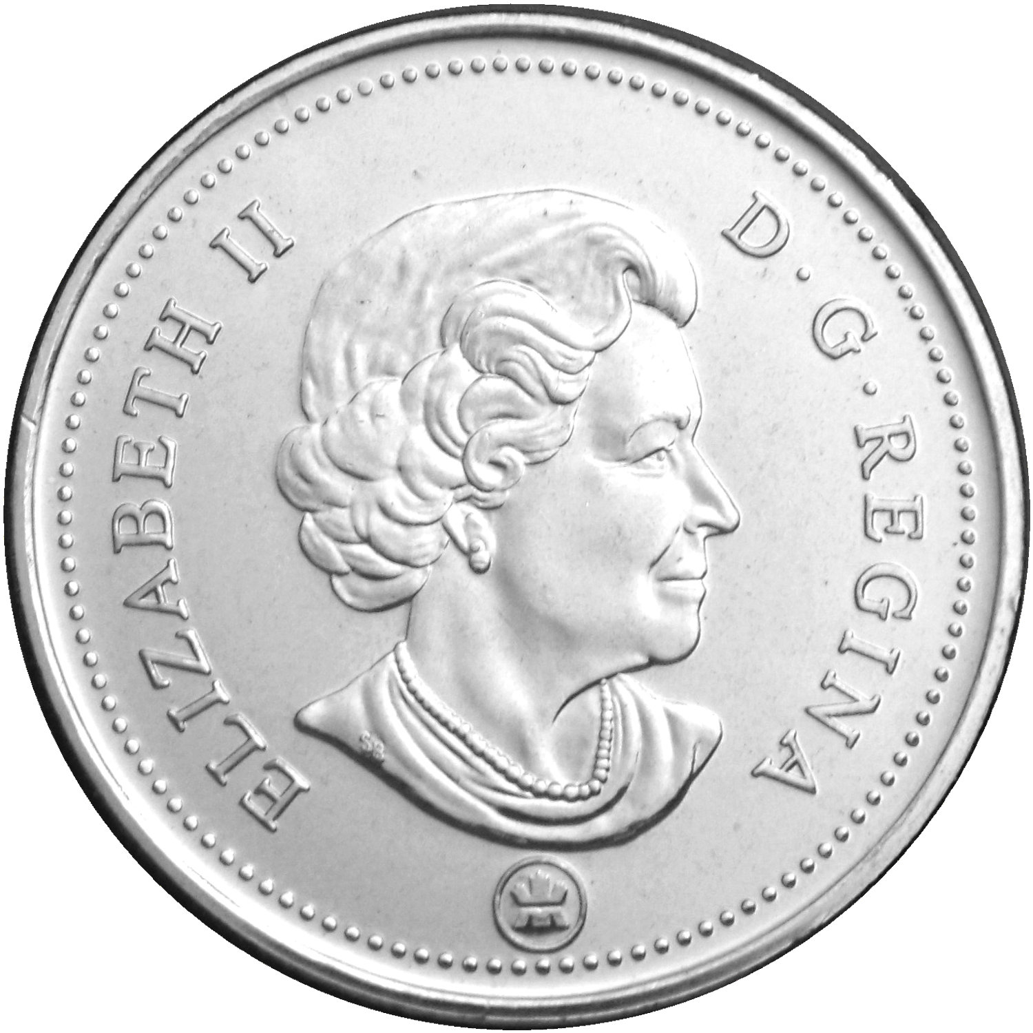 designed by Susanna Blunt and Susan Taylor. During the 2006 production run a new stylized logo for the Royal Canadian Mint was added below the Queen's effigy, replacing the "P" composition mark. |