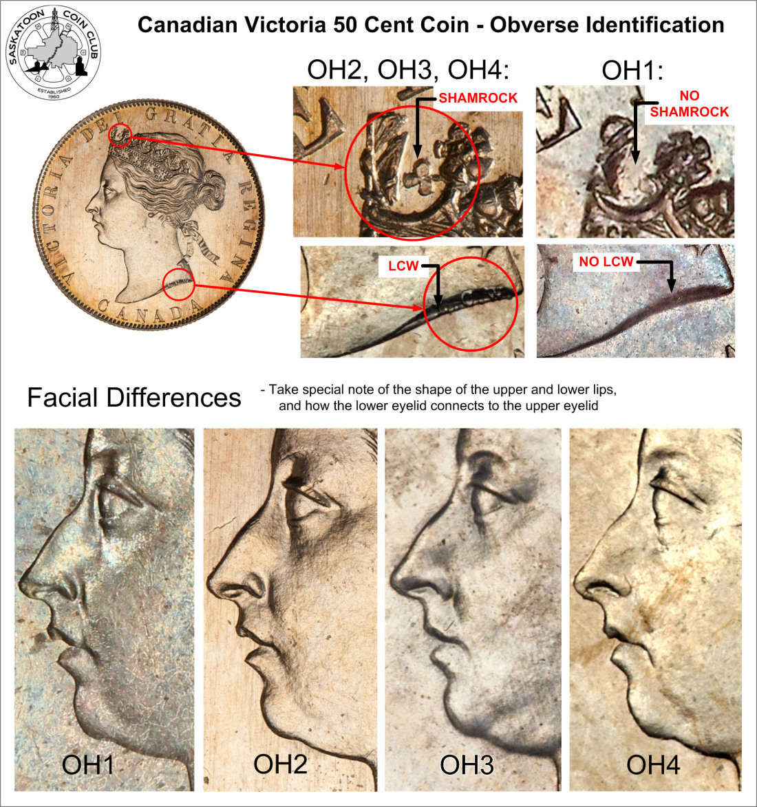 Victorian 50 Cent Canadian Coin Obverse Identification Click here to download a PDF copy (NOTE: Scroll down on this page to view full obverse images of each type) Click the image below to view a full screen version, then click again to view a full SIZED version:
