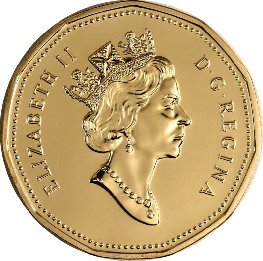 New Effigy (no date) A new obverse designed by Dora de Pedry-Hunt and Ago Aarand was created in 1990 showing the Queen wearing a diamond diadem and jewellery. Note: No Loon coins were issued for circulation between the years 1997-2001. The only coins that exist were issued with uncirculated coin sets |