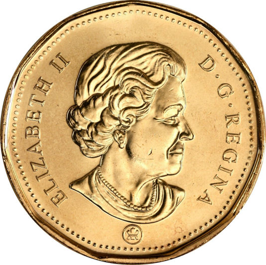 designed by Susanna Blunt and Susan Taylor. Note: The identical obverse was also used on: - The 2004 "Lucky Loonie" - The 2006 "Lucky Loonie" - The 2010 Navy Anniversary, - The 2010 Sask. Roughriders 100th Anniversary - The 2011 Parks Canada coin. |