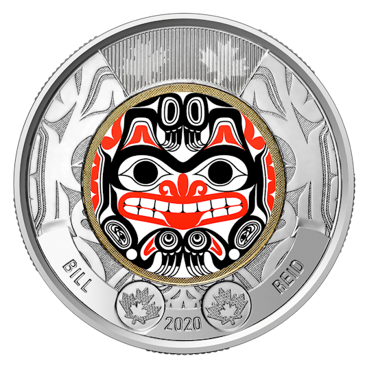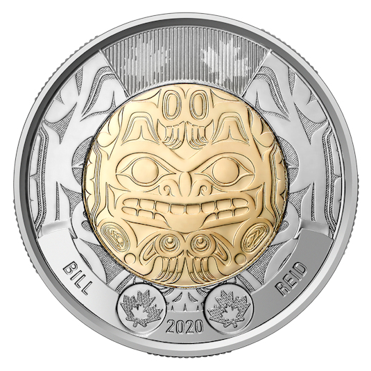In July of 2020 the Royal Canadian Mint released a pair of commemorative two dollar coins. They celebrate the 100th Anniversary of the birth of world famous Haida artist and sculptor Iljuwas (Bill Reid) (1920-1998).