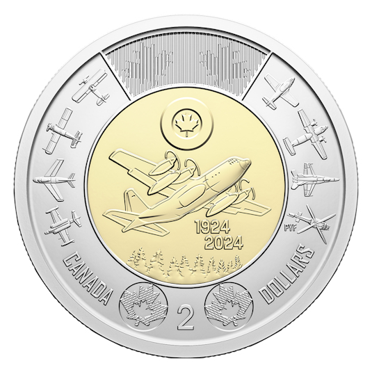 In September of 2024 the Royal Canadian Mint released a pair of commemorative two dollar coins. They commemorate the 100th Anniversary of the formation of the Royal Canadian Air Force.
