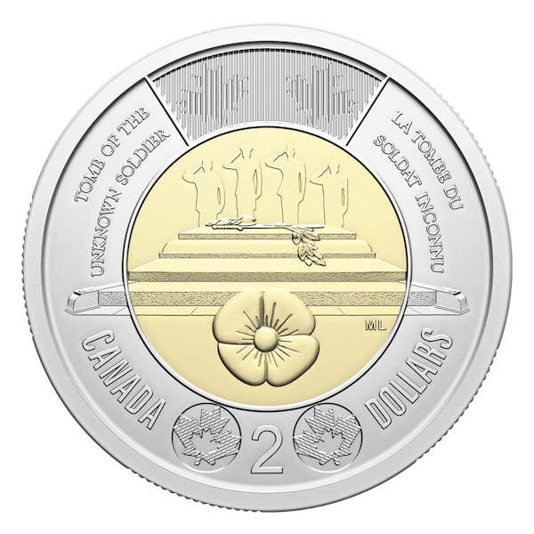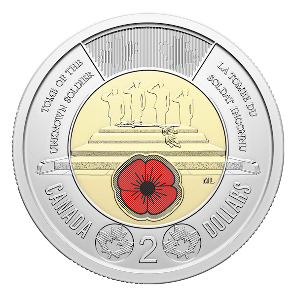 In November of 2025 the Royal Canadian Mint released a pair of commemorative two dollar coins. They honour the Tomb of the Unknown Soldier, which is located in front of the National War Memorial in Ottawa.