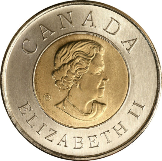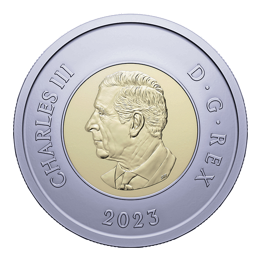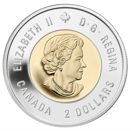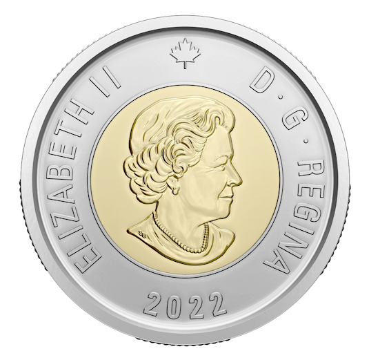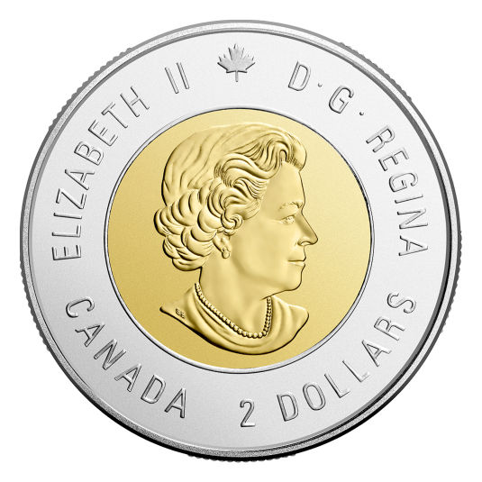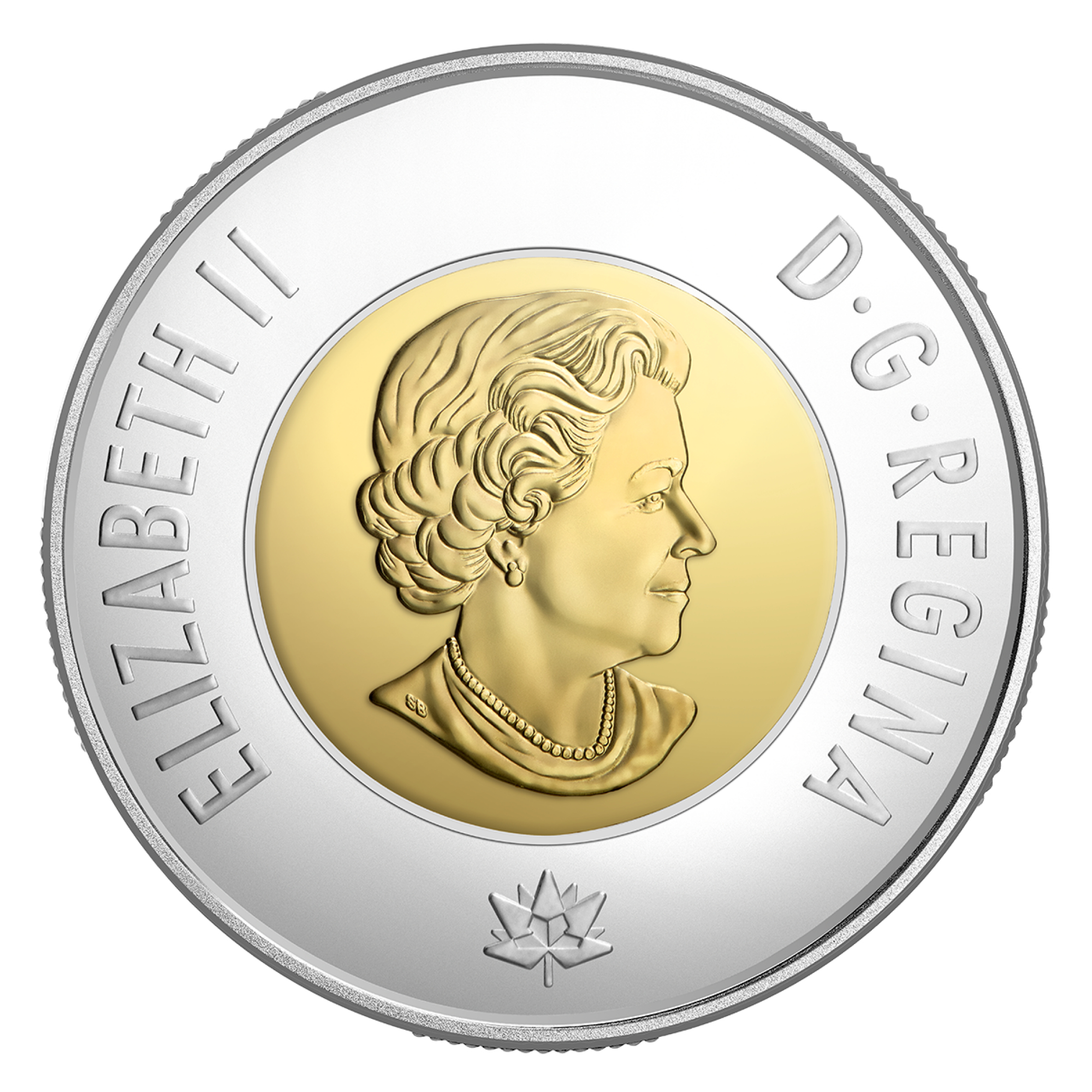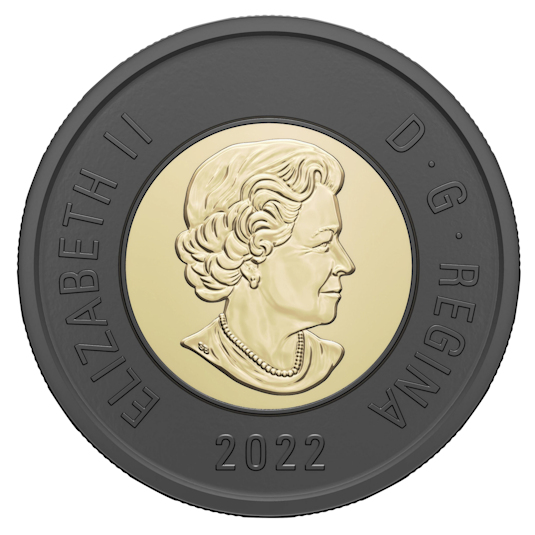 She was a constant presence in the lives of Canadians, who will forever remember her unwavering dedication to public service and deep affection for Canada and our people. Design: Designed by Susanna Blunt, the default $2 obverse design features the last effigy of Queen Elizabeth II used on Canadian coinage. The outer ring is made of black tinted nickel plated steel. |
