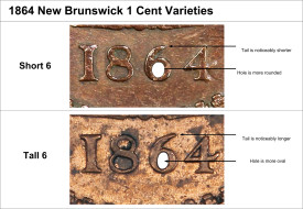 This page shows high resolution photos of high grade examples of every One Cent coin which was issued by the Province of New Brunswick. All of the coins displayed here were minted for circulation as legal tender in that province. NOTES: