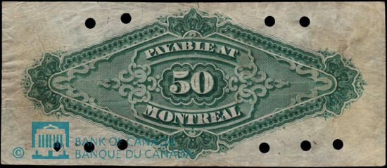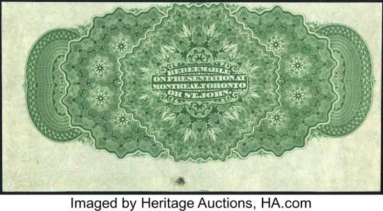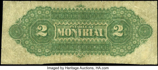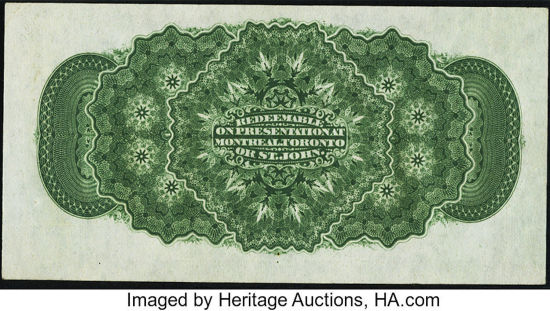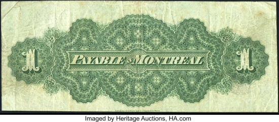 This example could only be redeemed in Montreal, Quebec. No signatures were printed on these notes. Once received in the appropriate city,
