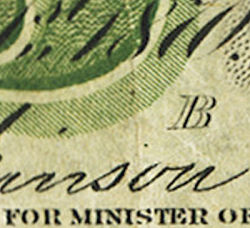 Because the series letter was ineffectively removed from the original 1870 plates, some "Plain" notes will show traces of the series letter: