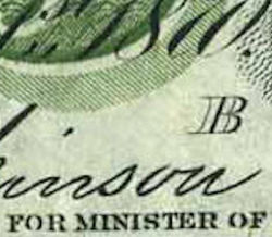 No signatures were printed on these notes. Once received in the appropriate city, each note was hand signed and coutersigned