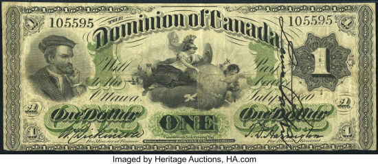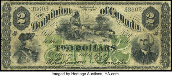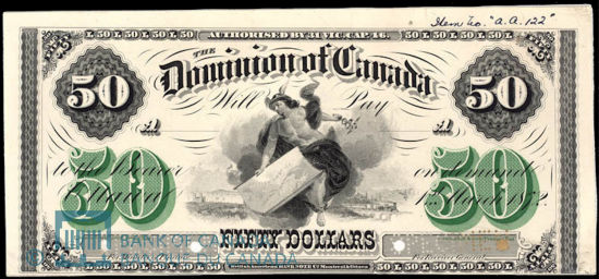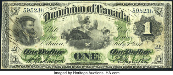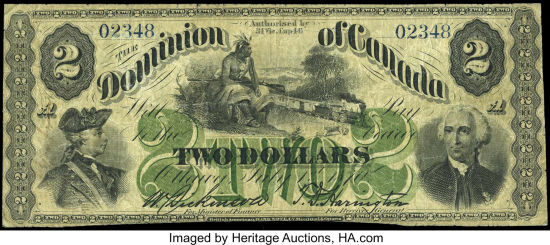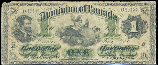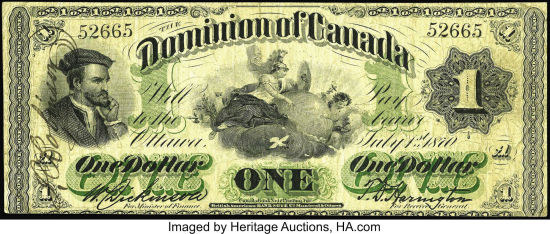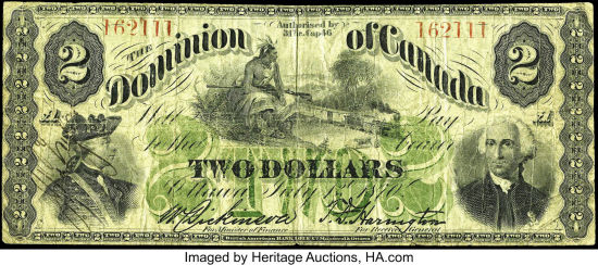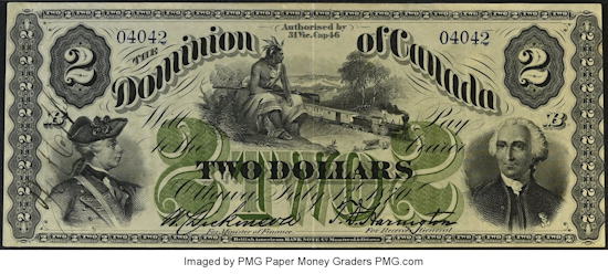 For a temporary period following Confederation in 1867, Province of Canada notes served as the Dominion of Canada's first national currency, and notes were