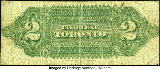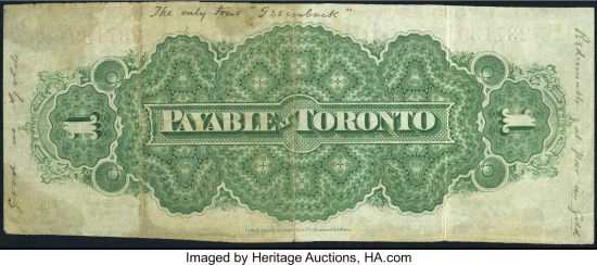 While the front of each note is identical, the back of each note states which city the note could be redeemed in (Montreal or Toronto)
