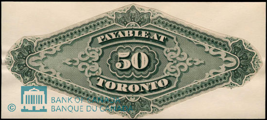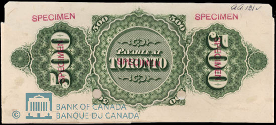 NOTE - NO COMPLETE NOTES EXIST. The only photo that could be located is that of a Proof printing of the back of the Toronto note.