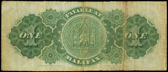 Back - The Great Seal of Canada and "PAYABLE AT HALIFAX".