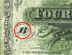 These notes were printed in sheets of four, with the same sheet number printed on each note. The Check letter is located above each vignette.
