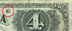 New collectors might assume that the printed numbers found on Dominion of Canada banknotes are "serial numbers". This is not the case. Notes were printed in sheets of four notes each as shown below.