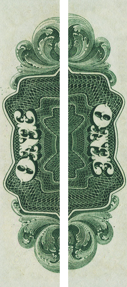 You will note that the border of the face on this note consists of the text "1 ONE DOLLAR" repeated all the way around the outside edge.