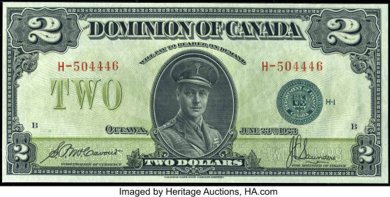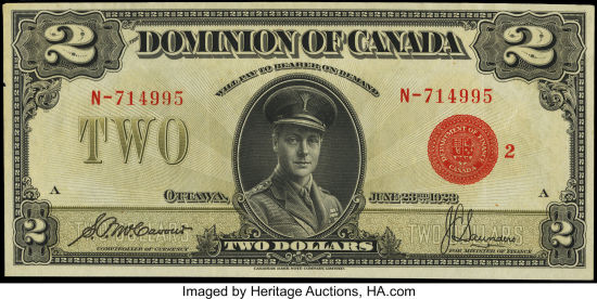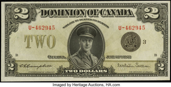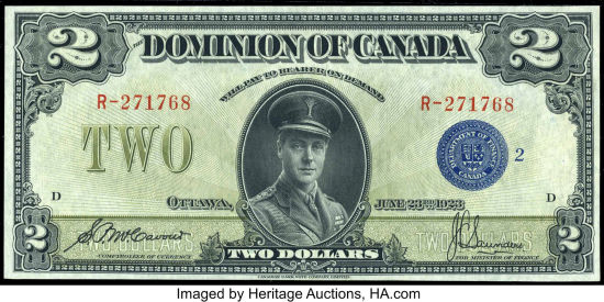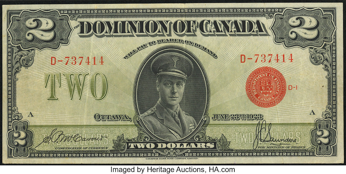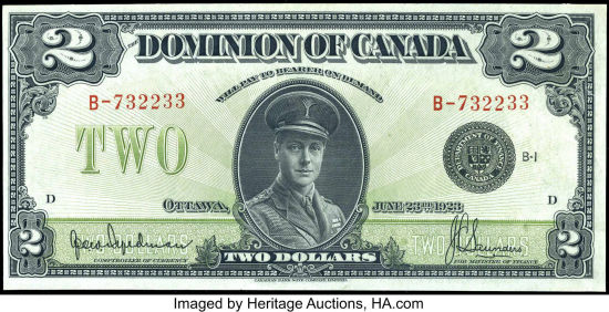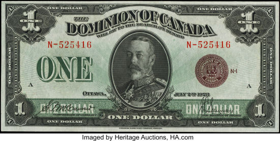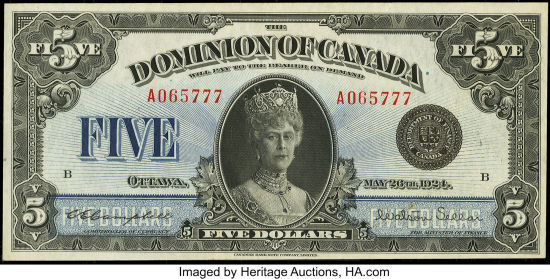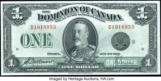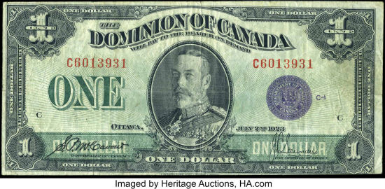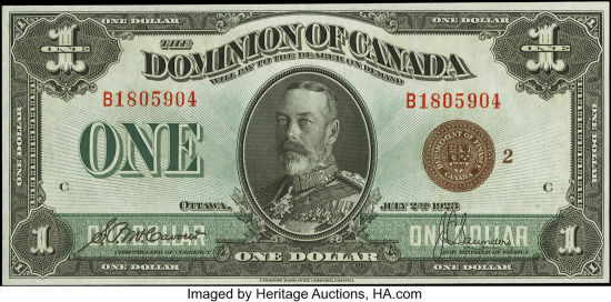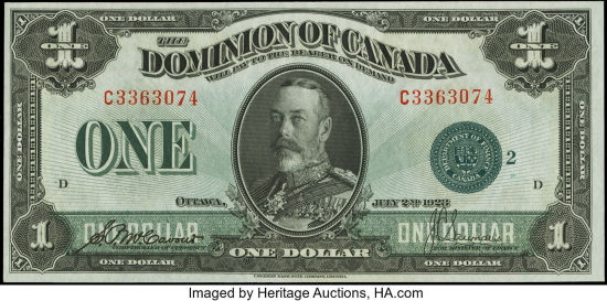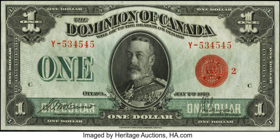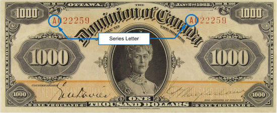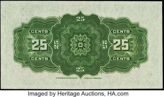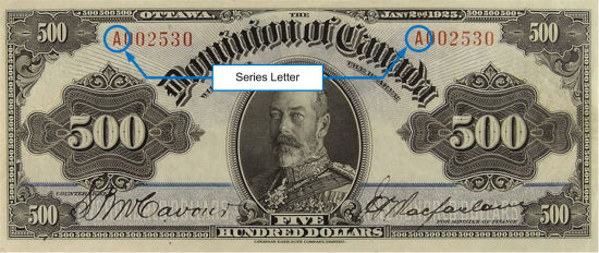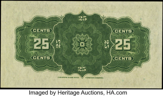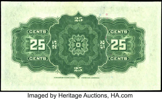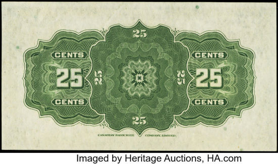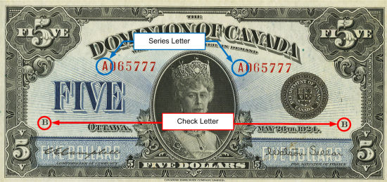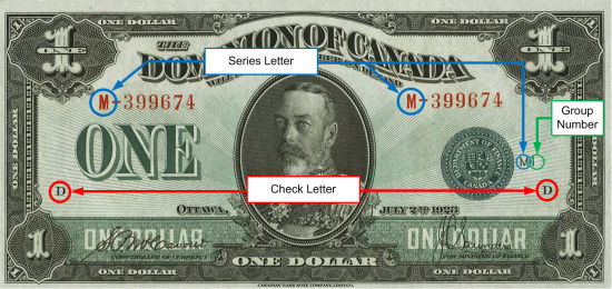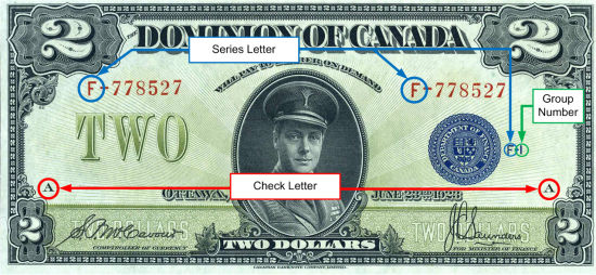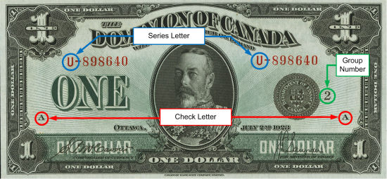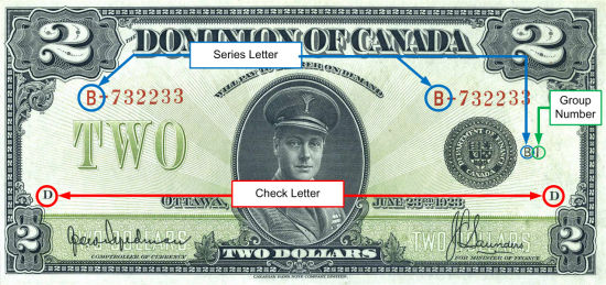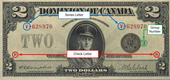 New collectors might assume that the printed numbers found on Dominion of Canada banknotes are "serial numbers". This is not the case. Notes were printed in sheets of 10 each (25 cent notes)
