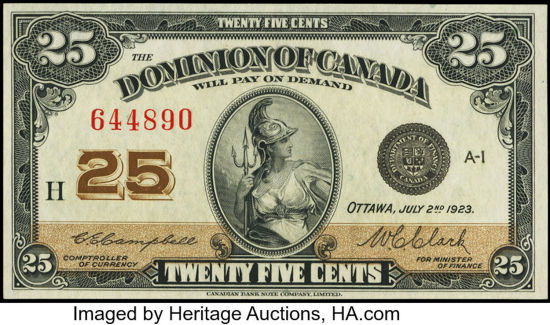 1923 25 Cent Shinplaster Note (McCavour/Saunders)