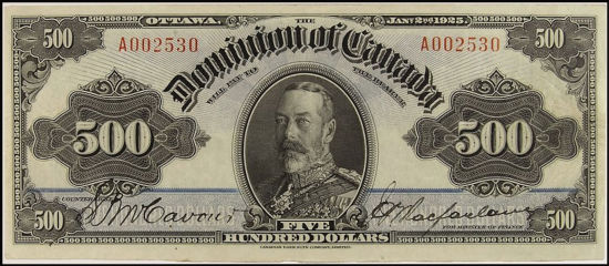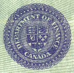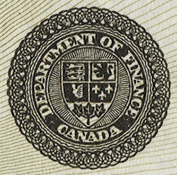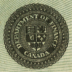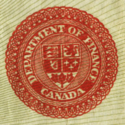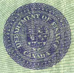 These notes were printed with the signature of the Deputy Minister of Finance (Watson Sellar) on the lower right side of the face. Once the notes were received by the Finance Department
