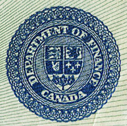 In this variety the seal of the Department of Finance was printed in blue ink: