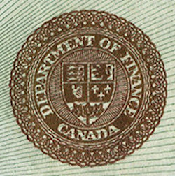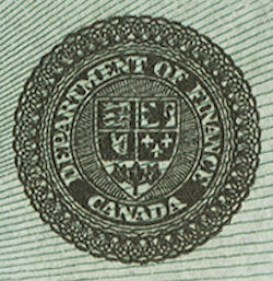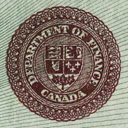 In this variety the seal of the Department of Finance was printed in bronze ink: