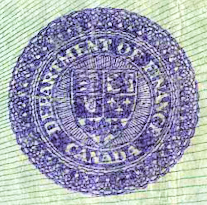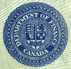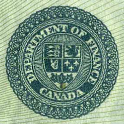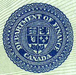 In this version the text "AUTHORIZED BY R.S.C. CAP. 31." has been deleted from above the Comptroller signature box: