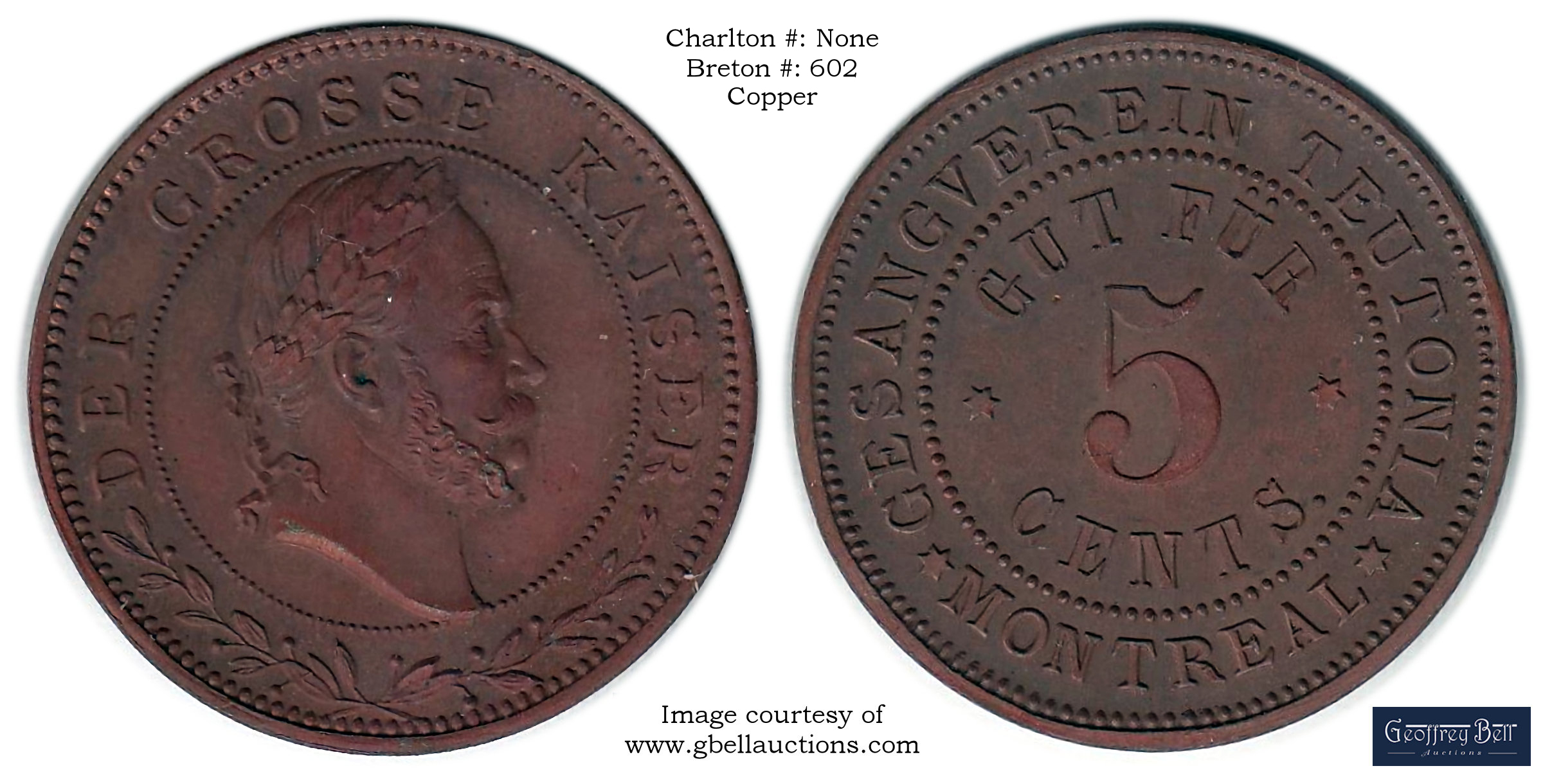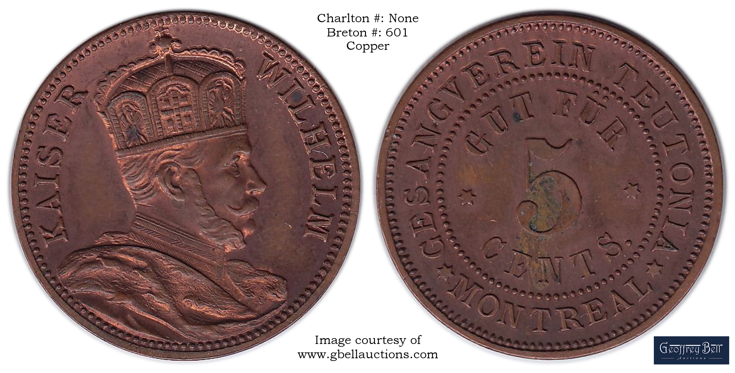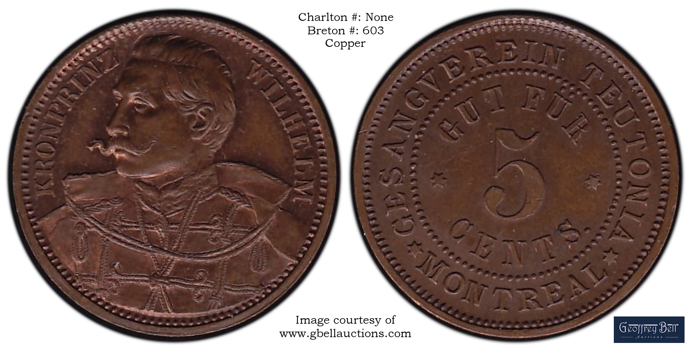 Reverse Content: Legend: GESANGVEREIN TEUTONIA MONTREAL Center: GUT FUR 5 CENTS |