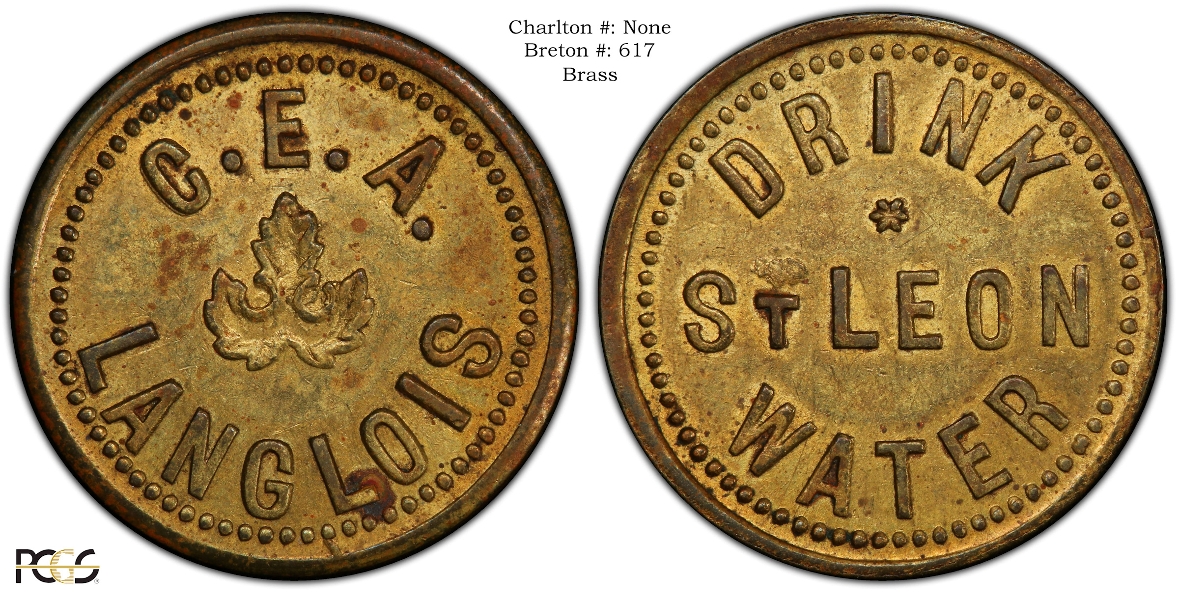 Obverse Content: Legend: C.E.A. LANGLOIS Center: (Image of three oak leaves styled to look like a maple leaf) |