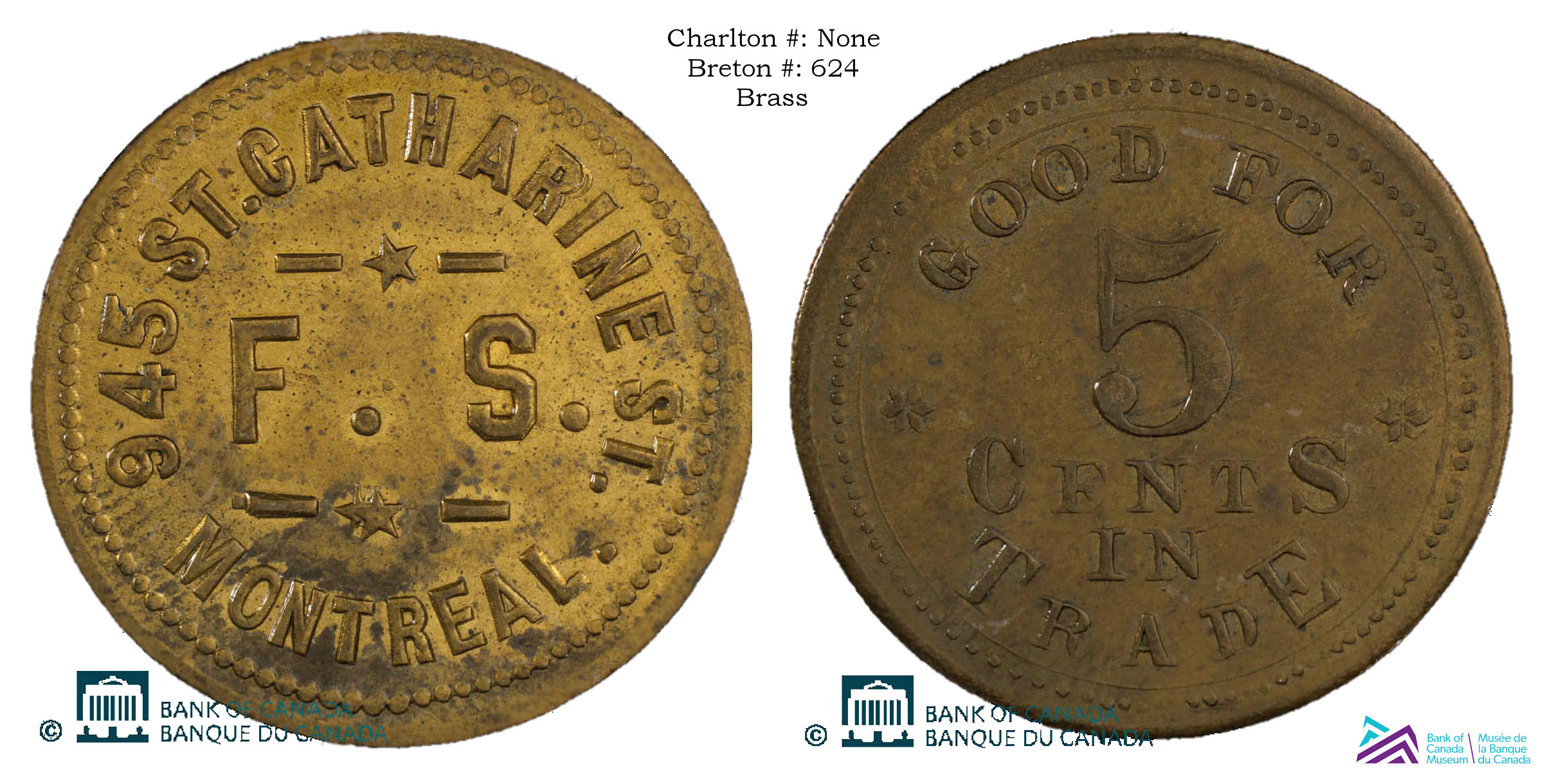 Obverse Content: Legend: 945 ST. CATHARINE ST. / MONTREAL Center: F.S. |
