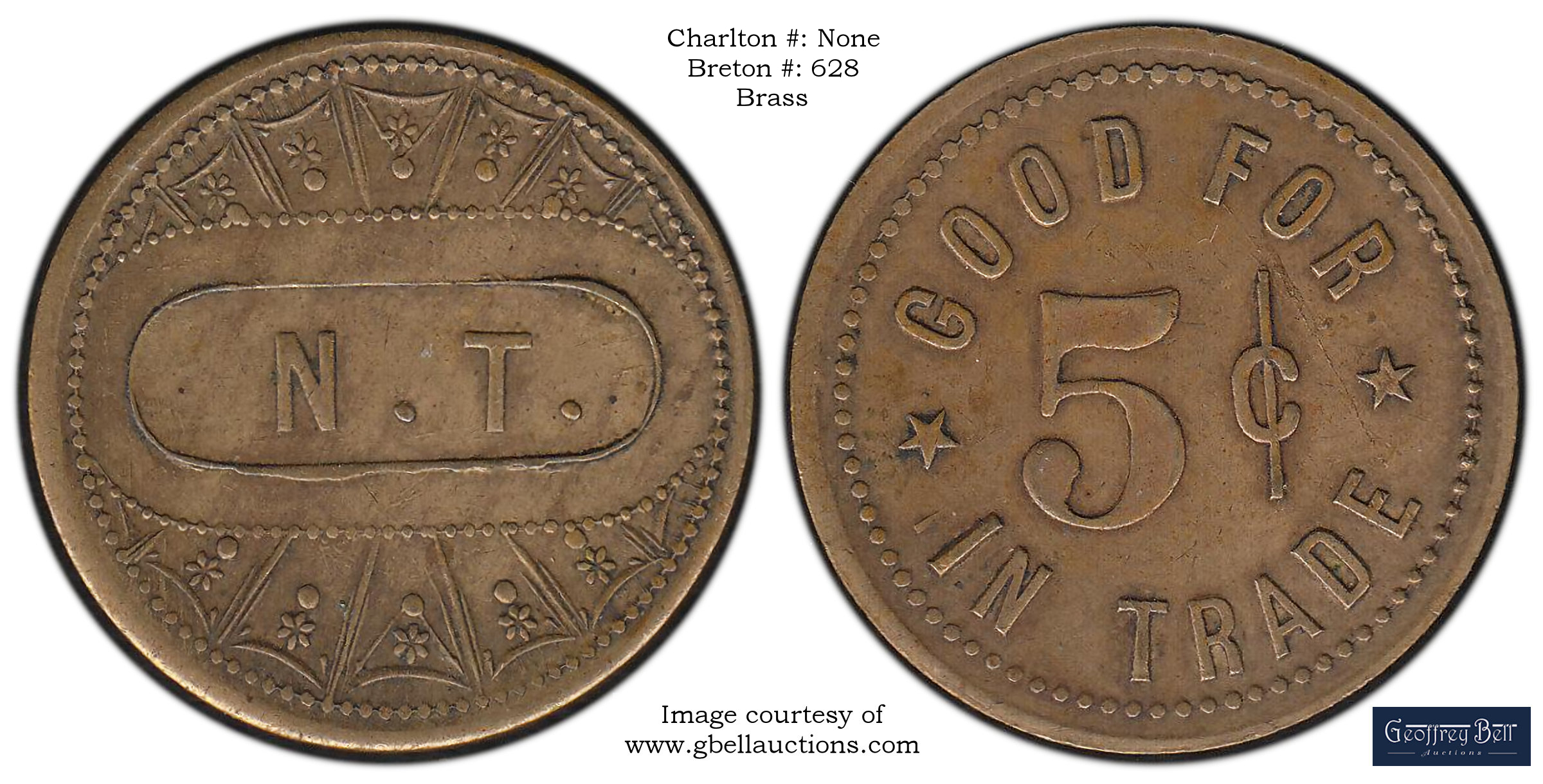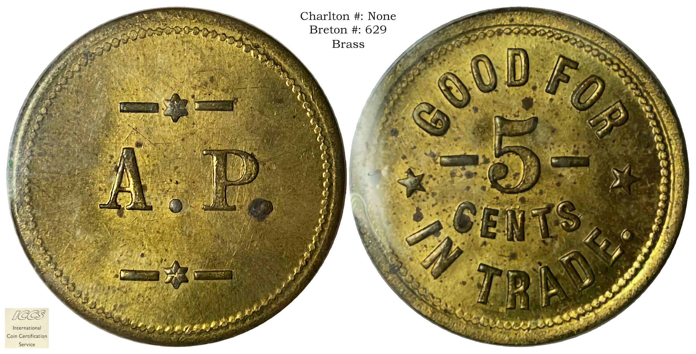 Reverse Content: Legend/Center: GOOD FOR -5- CENTS IN TRADE ("-5-" is flanked by five pointed stars) |