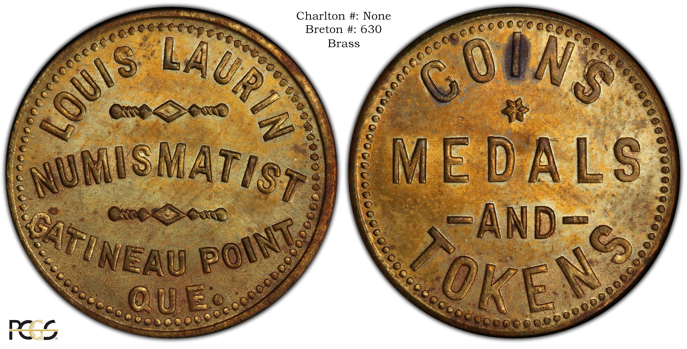 Obverse Content: Legend/Center: LOUIS LAURIN NUMISMATIST GATINEAU POINT QUE. |