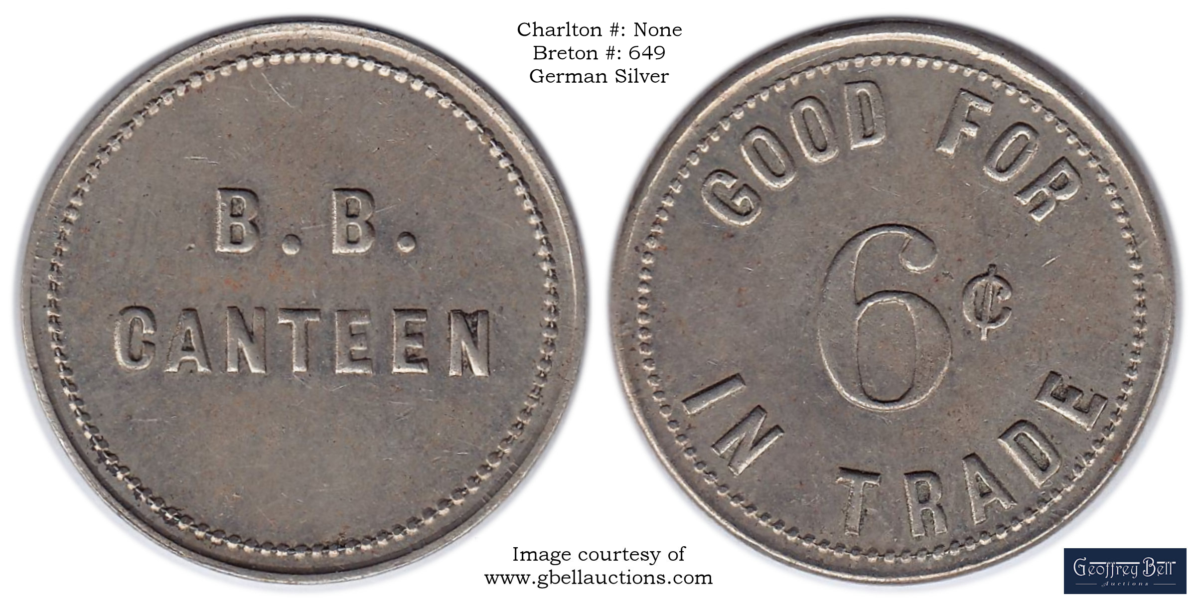 Breton 600 Series Part 2: Token numbers Br-634 to Br-669 While a large number of the tokens listed in P.N. Breton's catalogues from 1894 and 1912 are listed and re-catalogued in the 10th Edition of the Charlton Catalogue of Canadian Colonial Tokens, not all tokens were re-catalogued. This section details most of the "600 Series" Breton tokens not found in the Charlton catlogue. NOTE: Click on any photo to load a much larger version of the same photo |
