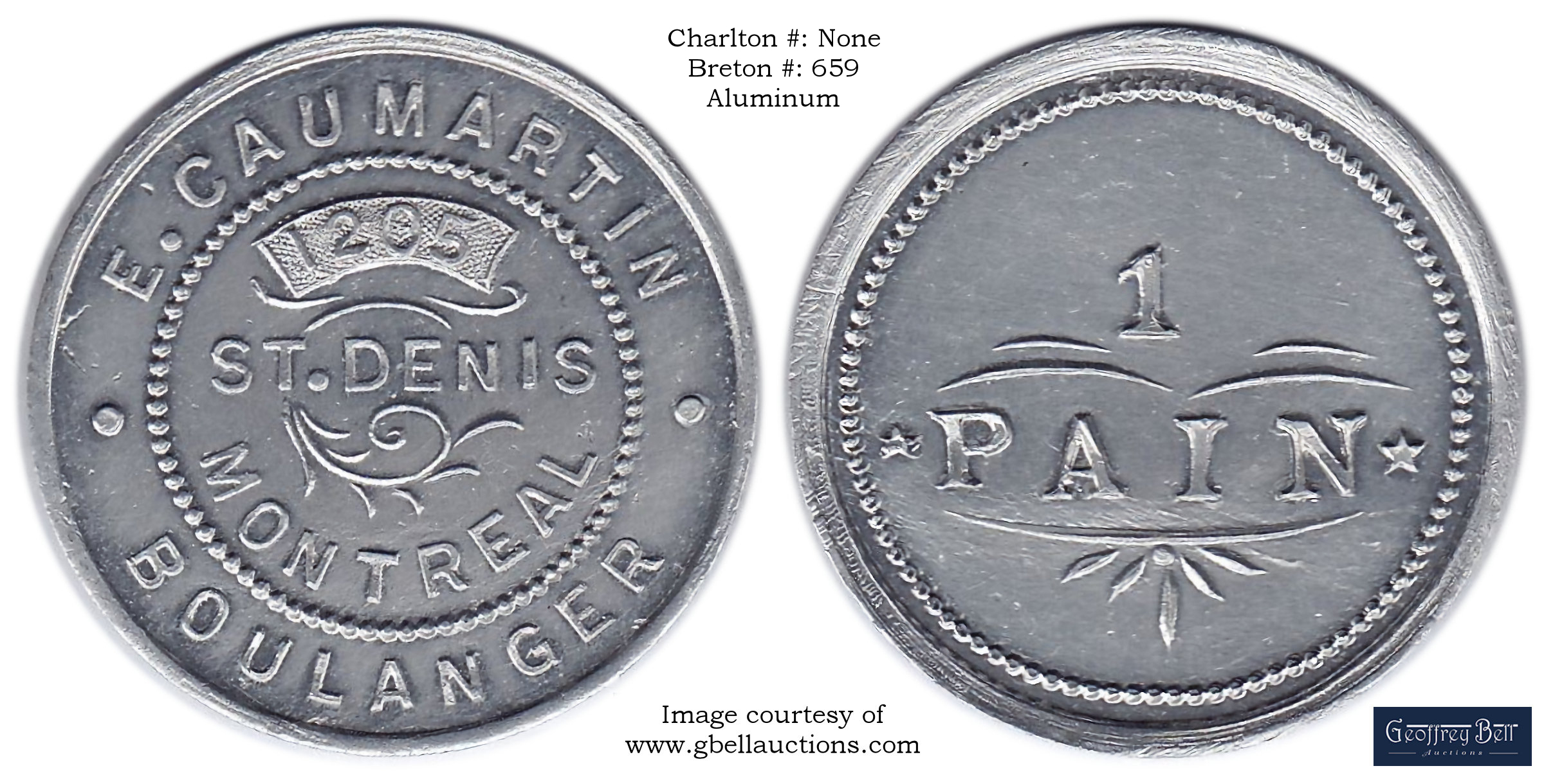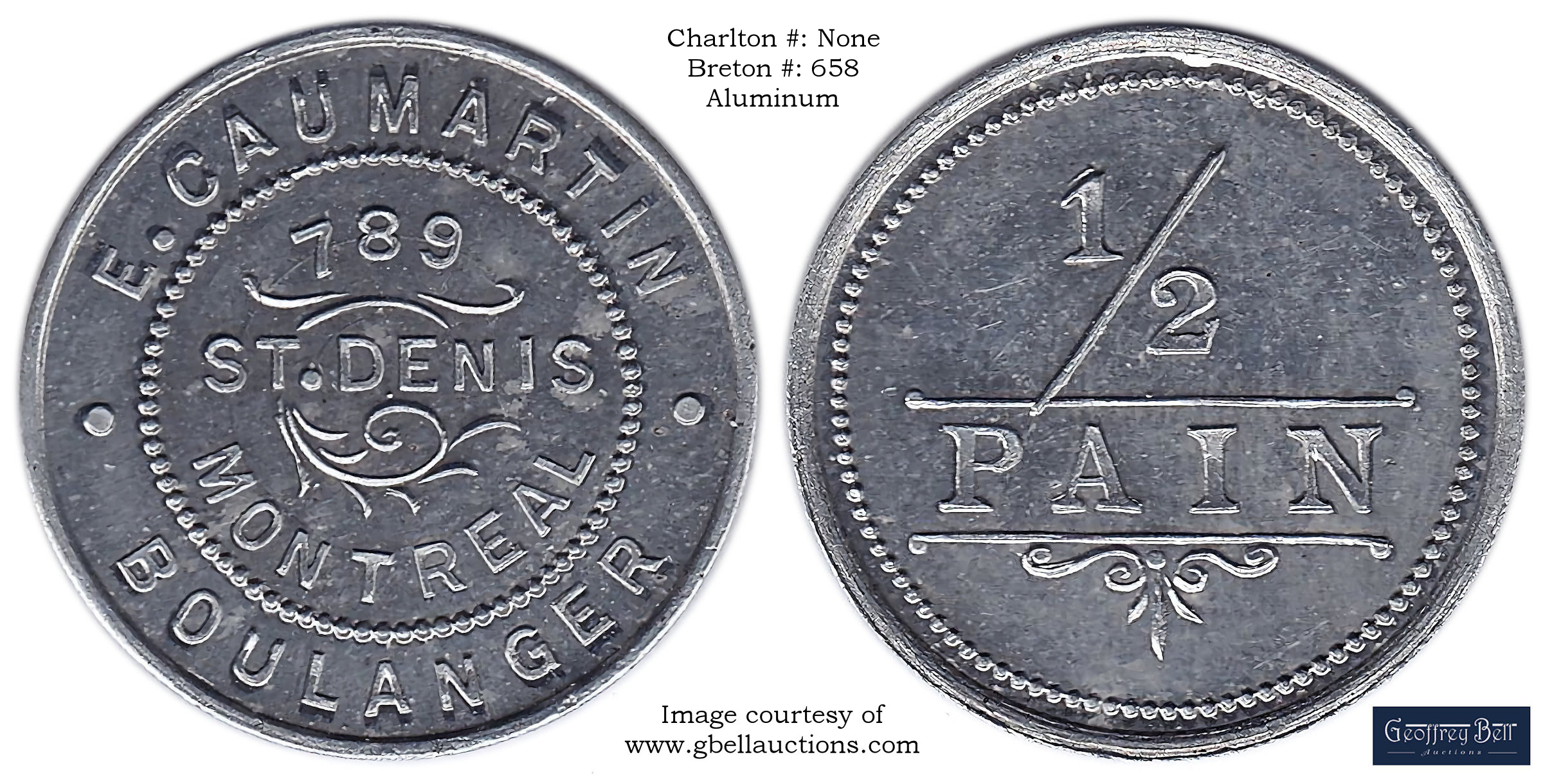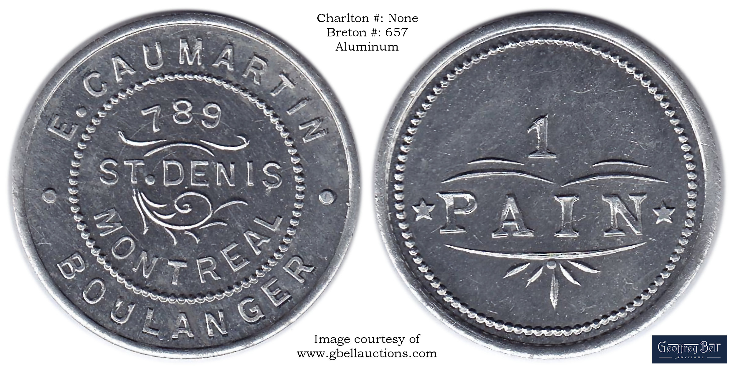 Obverse Content: Legend: E. CAUMARTIN / BOULANGER Center: 789 ST. DENIS MONTREAL |