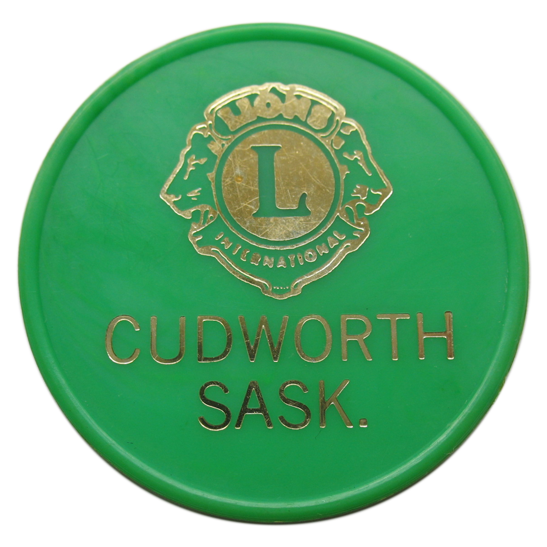 {Lions logo} CUDWORTH SASK. (uniface) [Green token color, Gold lettering] |