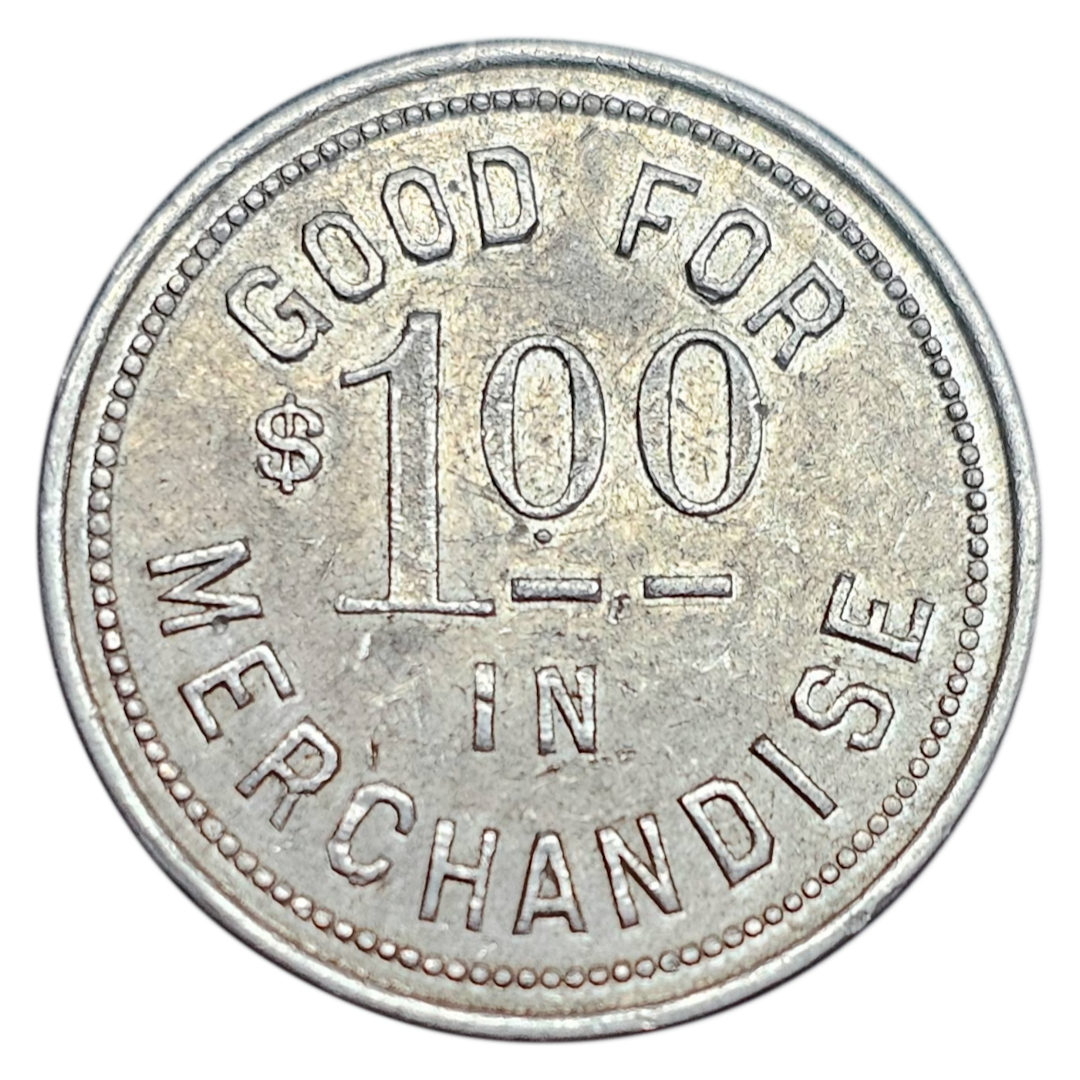 M. Goller General Merchant Cudworth, Sask. (Good For $1.00 In Merchandise) Martin Goller opened the general store in 1922 and in 1925 tokens were issued, $200.00 worth. In 1930 Mr. Goller sold his business and all tokens were gathered up. In 1935 he started another store in Battleford and intended to reuse the tokens but for some reason which he could not remember, they were not used. This business was sold in 1939 and Mr. Goller does not remember what happened to the tokens at this time. He must have had two issues as a recent discovery shows a 5¢, 10¢ and 25¢ different than the above listed. |