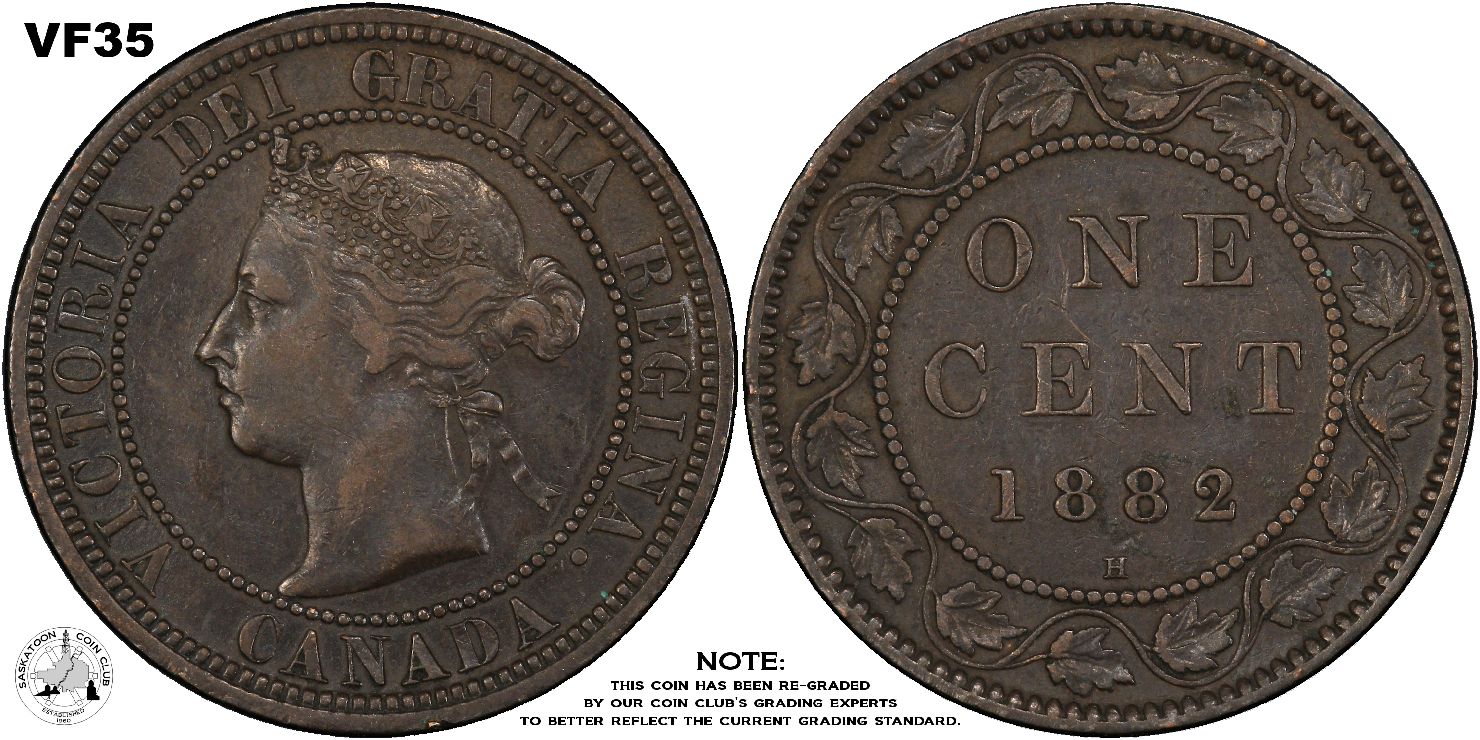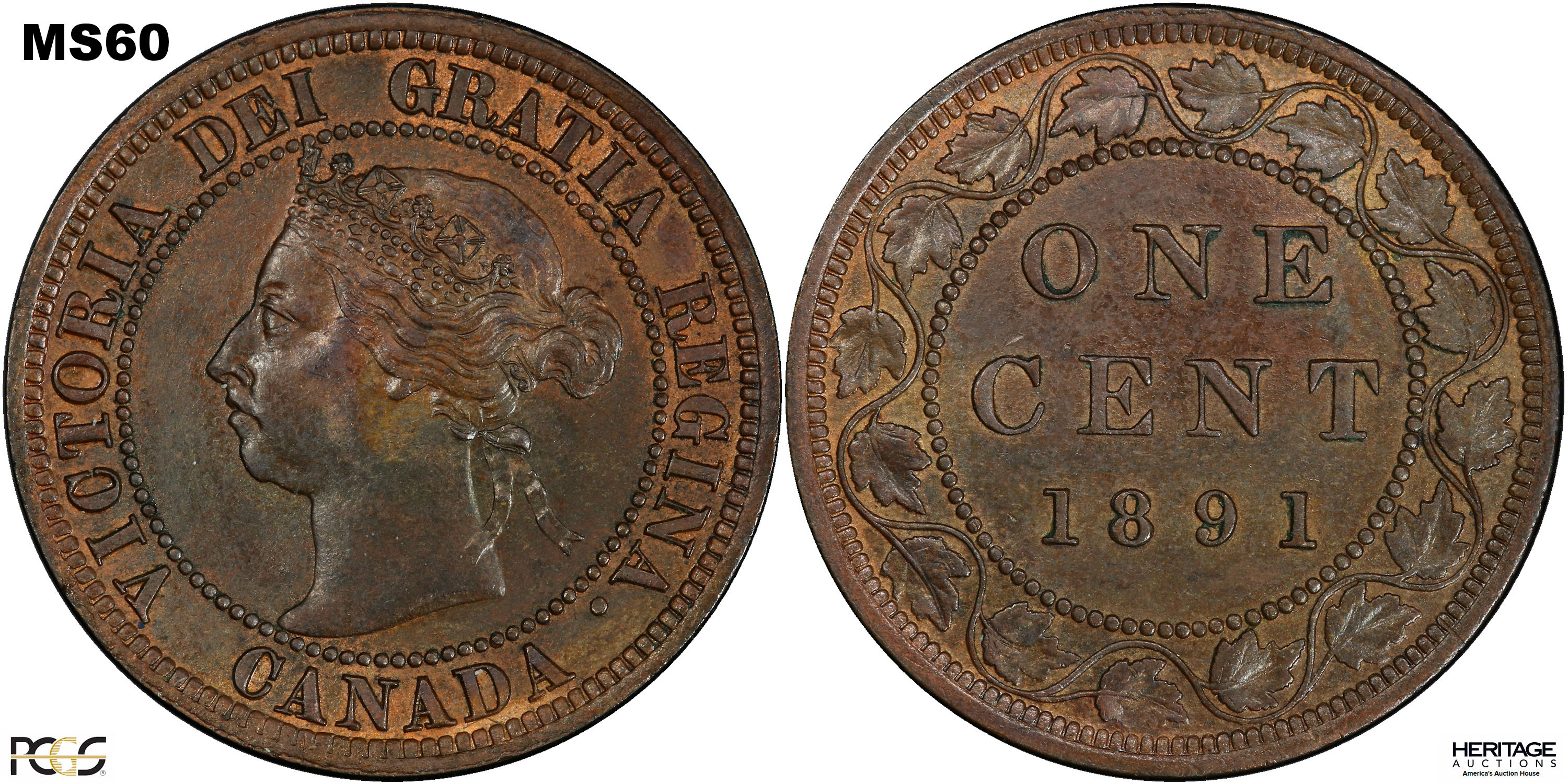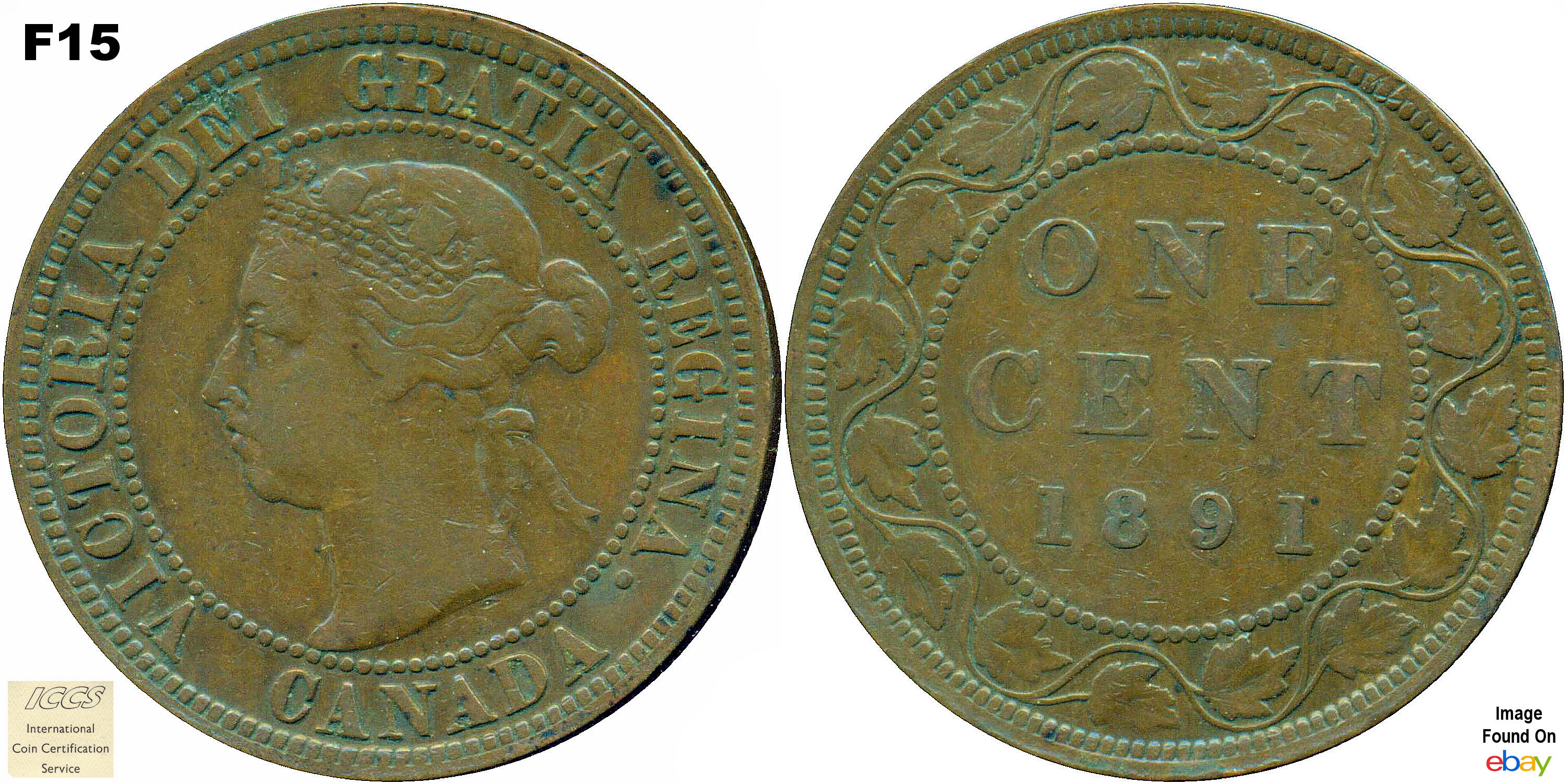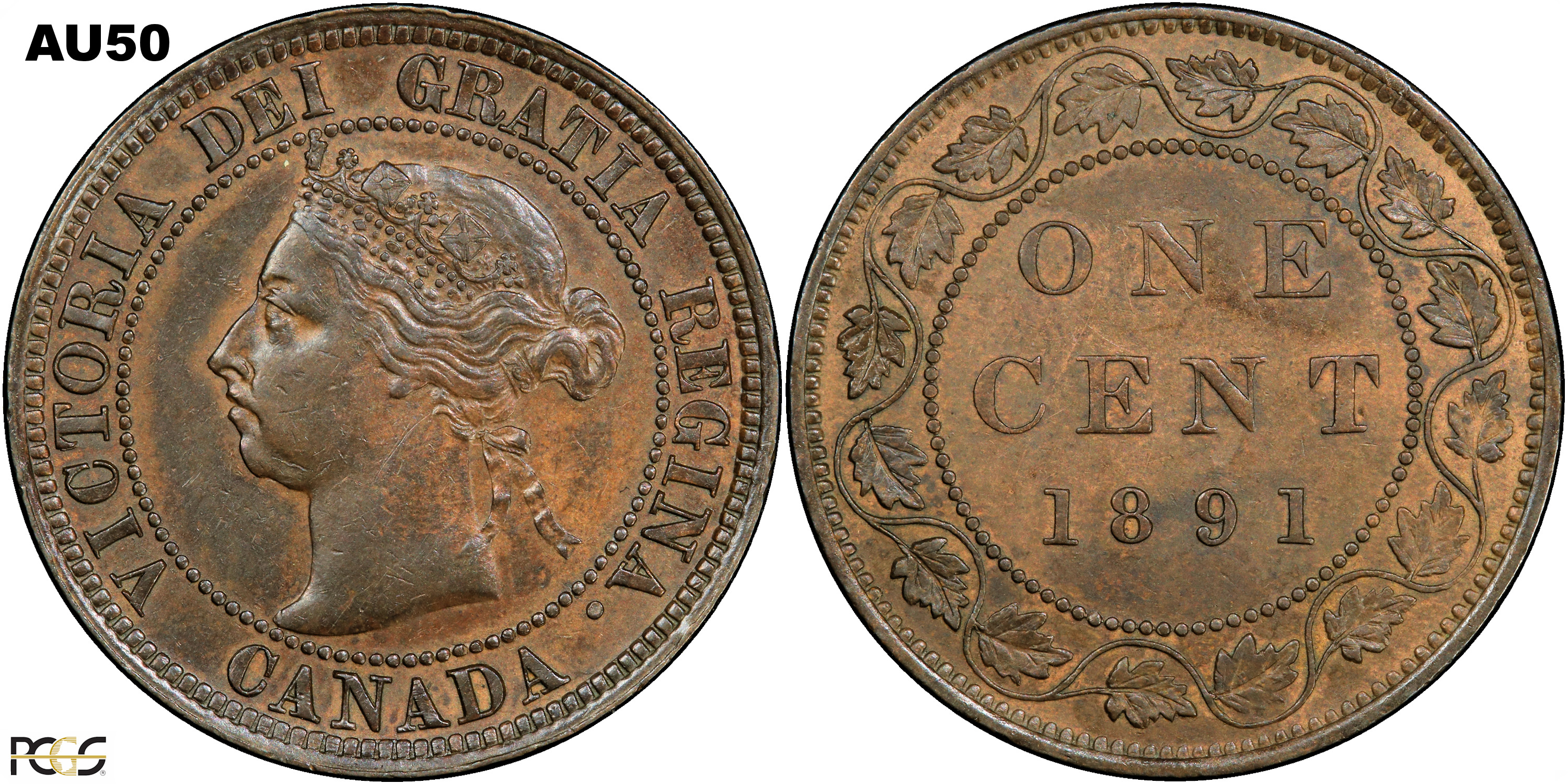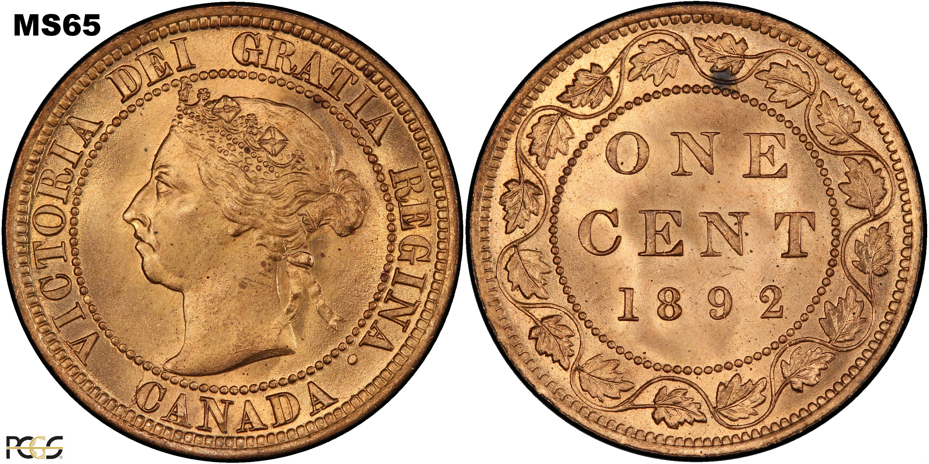 This page describes the criteria used to assign grades to 1 cent Canadian circulation coins which use the "Diademed" portrait of Queen Victoria, issued between 1876 and 1901. It also shows sample images of each grade. All photos used here were taken of coins that have been professionally graded by companies like PCGS, NGC, ICCS, CCCS, ANACS, or ICG. NOTE: Click on any photo to load a much larger version of both the obverse and reverse sides of the graded coin. Once that photo has loaded on screen, if you click it again you will see a huge photo which allows you to see every fine detail. |