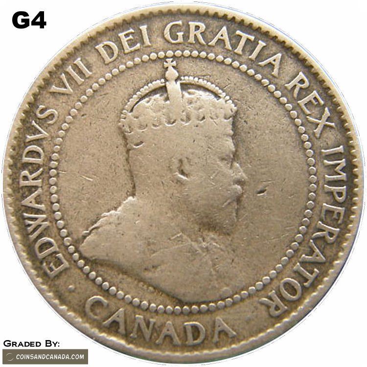 G-4 (Good 4)- Only the silhouette of Edward remains. All portrait detail is worn away. - Some letters around the rim may have begun to merge with the field (even if by only one letter). |