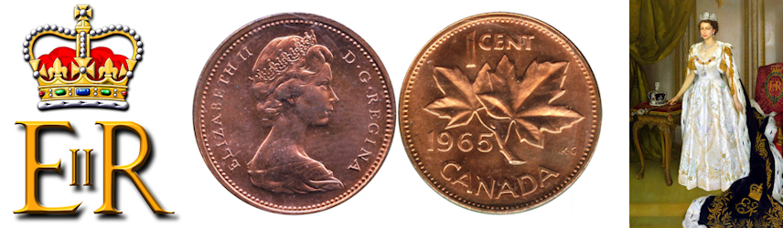 This page describes the criteria used to assign grades to 1 cent Canadian circulation coins which use the portrait of Elizabeth II between 1965 and 1981. It also shows sample images of each grade. All photos used here were taken of coins that have been professionally graded by companies like PCGS. NOTE: Click on any photo to load a much larger version of both the obverse and reverse sides of the graded coin |