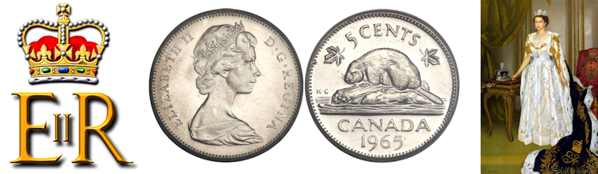 This page describes the criteria used to assign grades to 5 cent Canadian circulation coins which use the portrait of Elizabeth II between 1965 and 1981. It also shows sample images of each grade. All photos used here were taken of coins that have been professionally graded by companies like PCGS. NOTE: Click on any photo to load a much larger version of both the obverse and reverse sides of the graded coin |