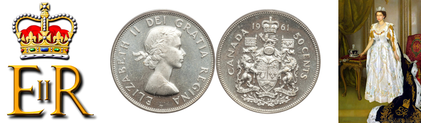 This page describes the criteria used to assign grades to 50 cent Canadian circulation coins which use the portrait of Elizabeth II between 1953 and 1964. It also shows sample images of each grade. All photos used here were taken of coins that have been professionally graded by companies like PCGS. NOTE: Click on any photo to load a much larger version of both the obverse and reverse sides of the graded coin |