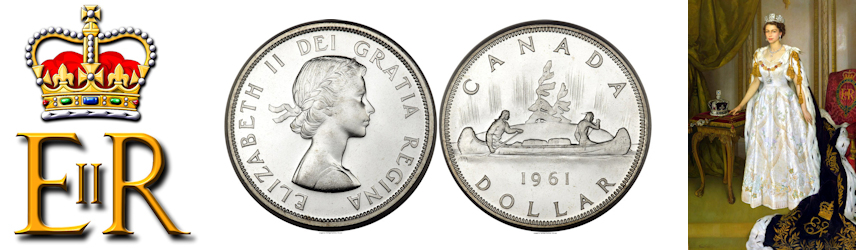 This page describes the criteria used to assign grades to 1 dollar Canadian circulation coins which use the portrait of Elizabeth II between 1953 and 1964. It also shows sample images of each grade. All photos used here were taken of coins that have been professionally graded by companies like PCGS. NOTE: Click on any photo to load a much larger version of both the obverse and reverse sides of the graded coin |